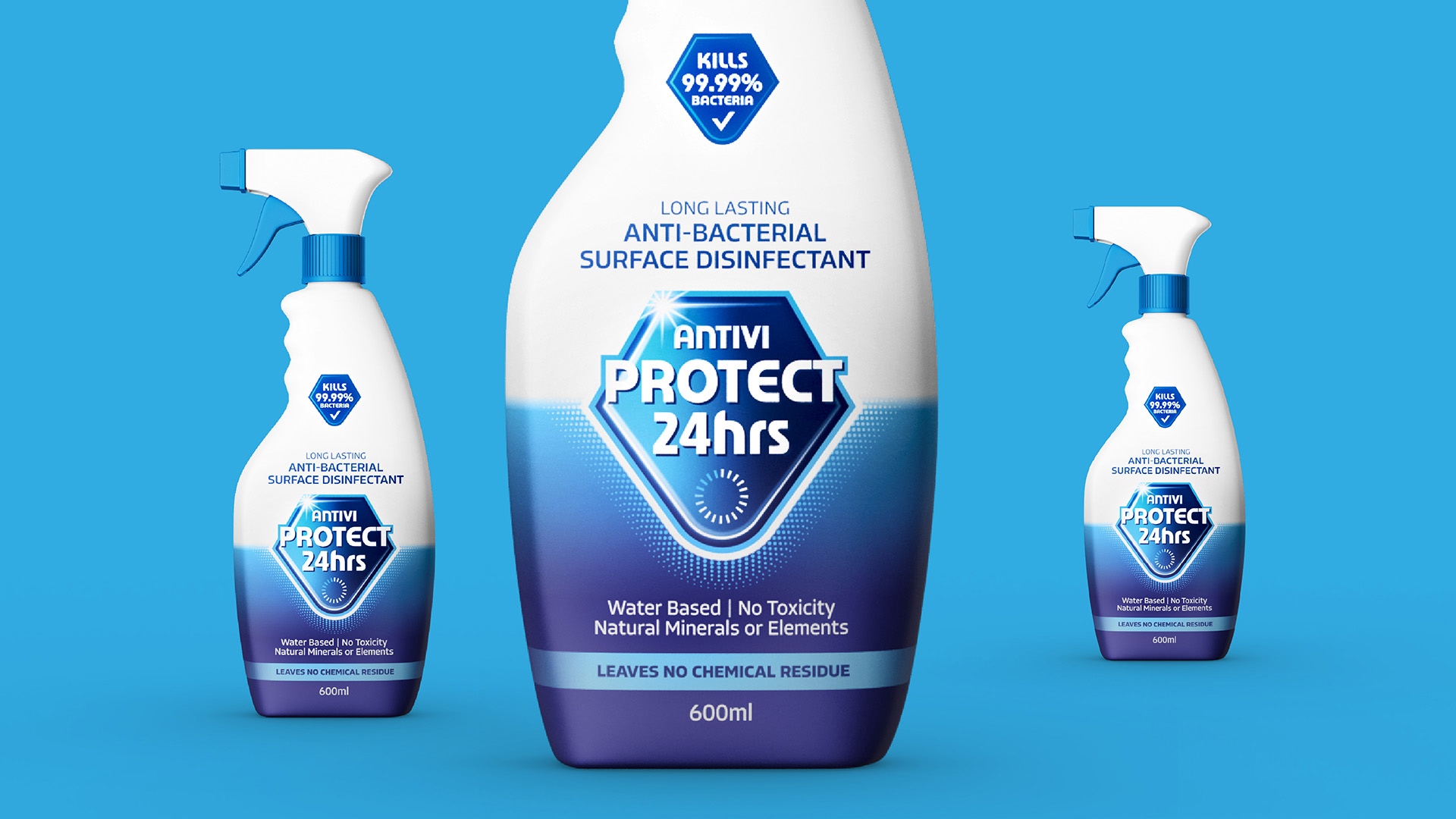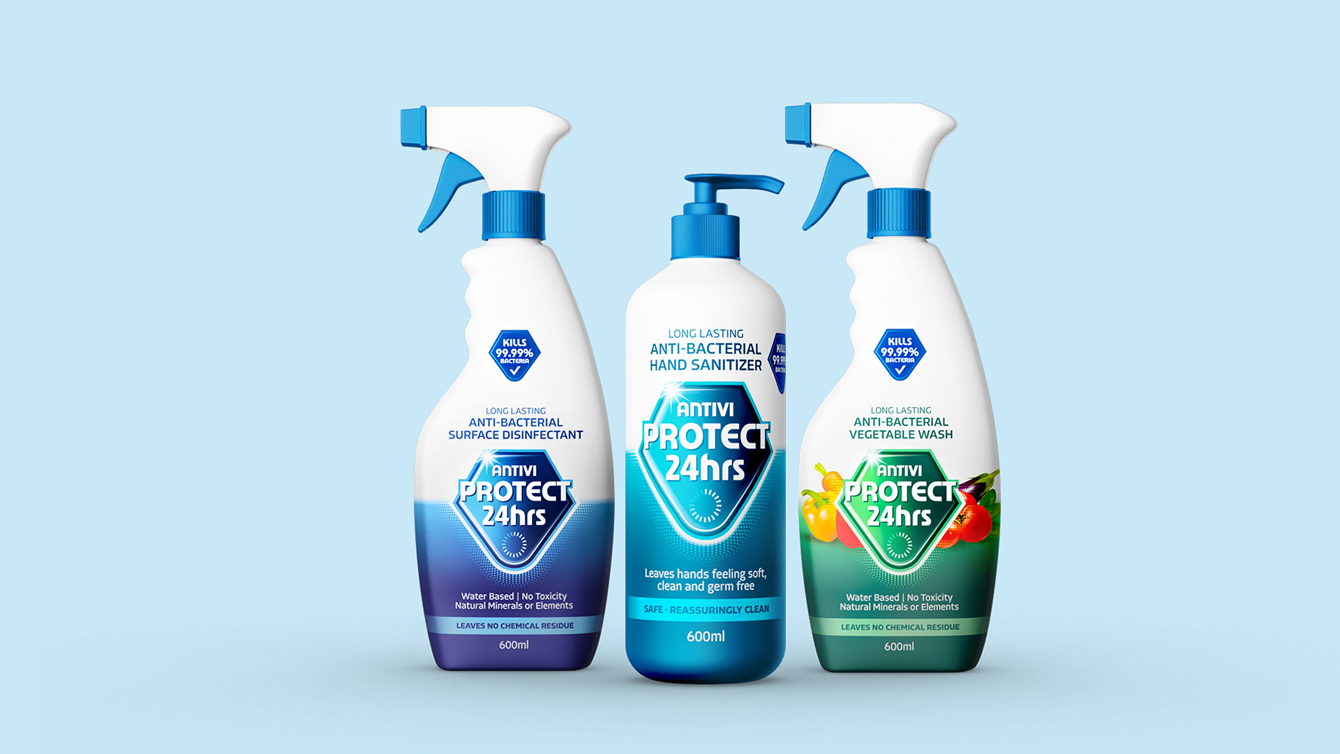 We channelled this technological spirit into building an identity and package design designed to invoke a sense of innovation. The outcome was a brand that gave ANTIVI Protect an unmistakenly clean, clinical and scientifically proven feel.