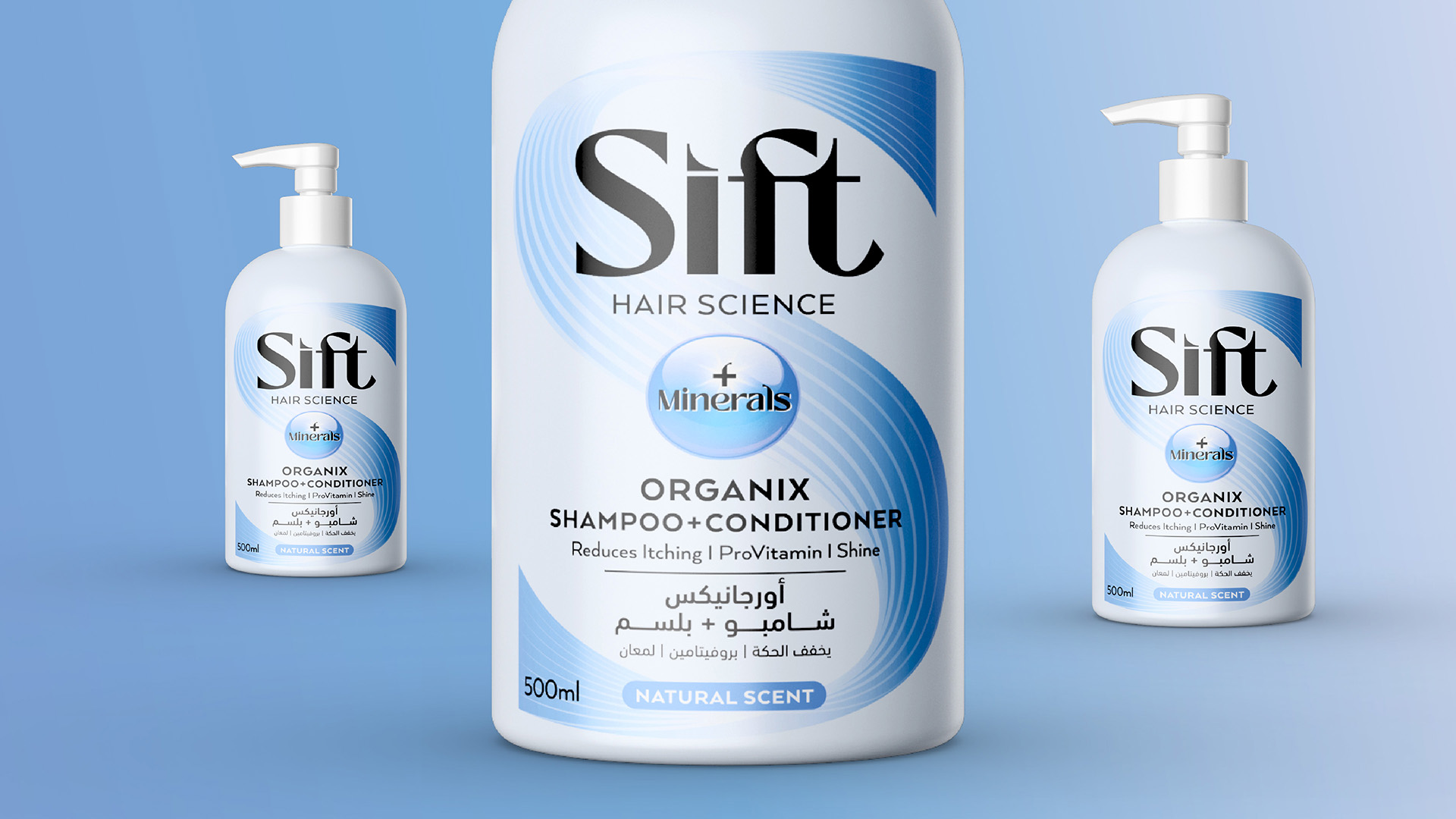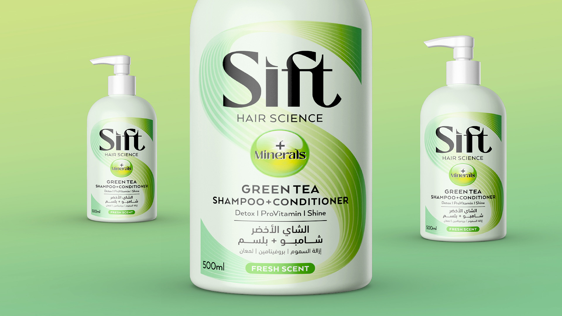 Through simply yet sleek packaging and messaging, SIFT consumers quickly grasp how its “hair science” will lift their haircare regimen.