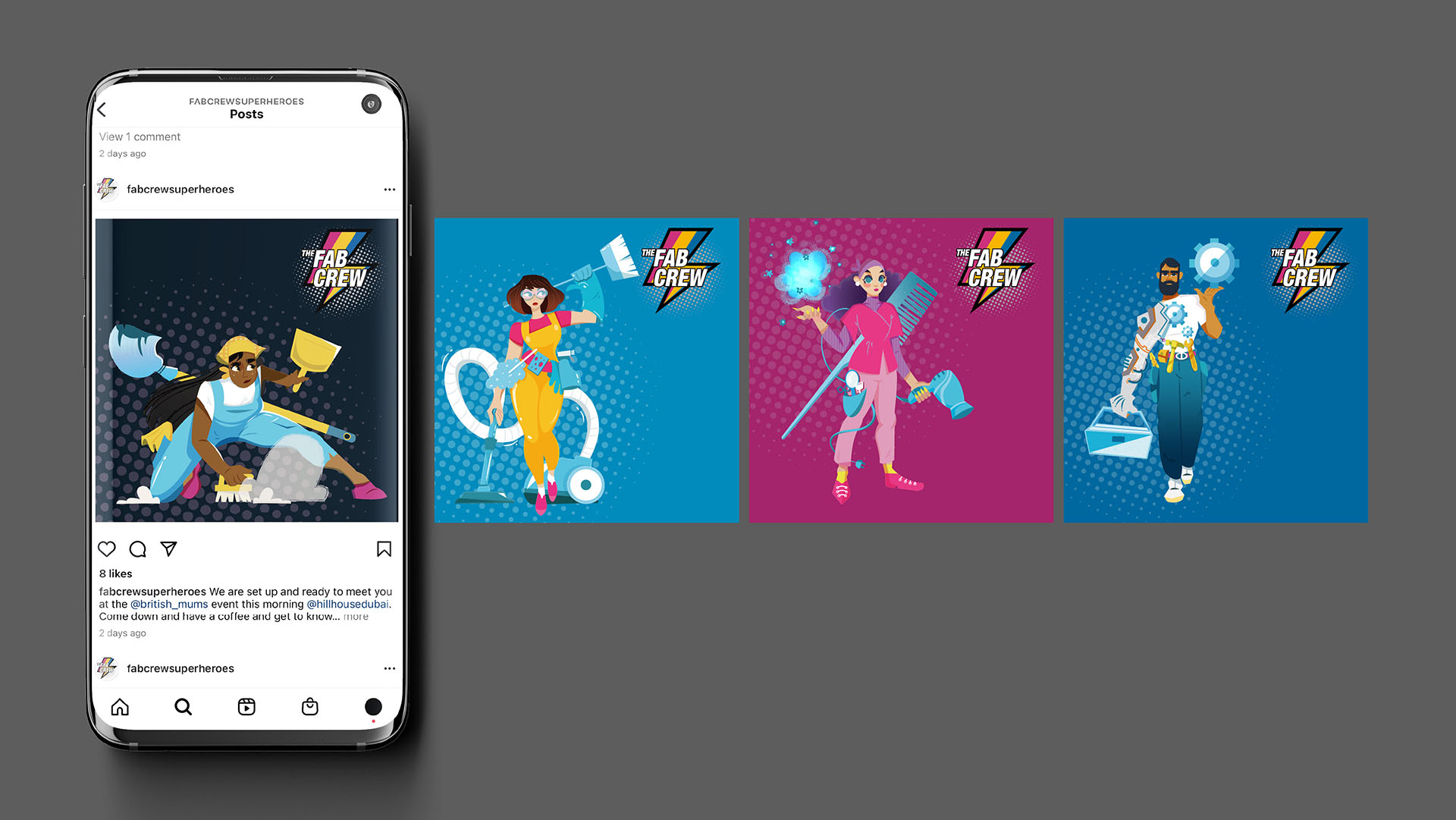 In collaboration with the client, we built a brand identity around the superhuman efforts of each Fab Crew member, putting them front and centre. Embracing a unique illustration style, we gave each of the team a superhero avatar and bio that brings the core vision and offering of the company to life.